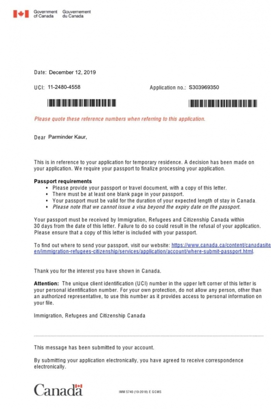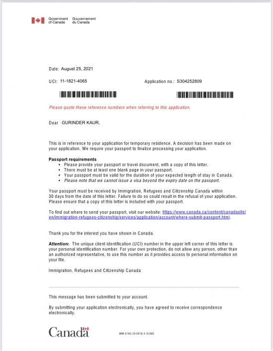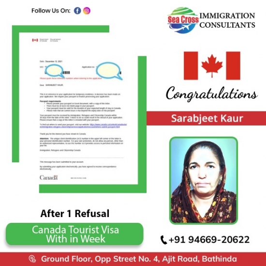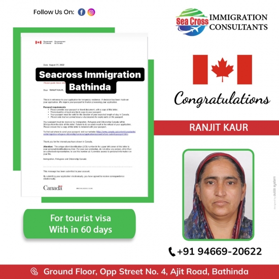 Congratulations to Ranjit kaur for Canada tourist visa