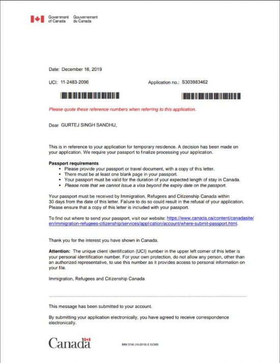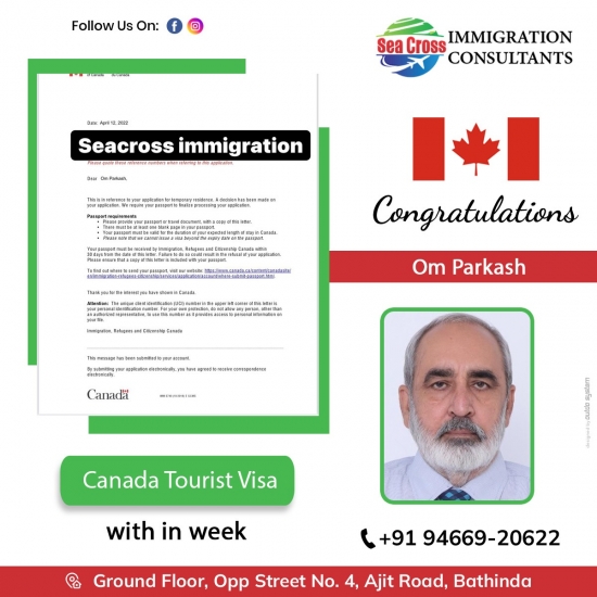 Congratulations to Gagandeep Singh Sidhu for family tourist visa