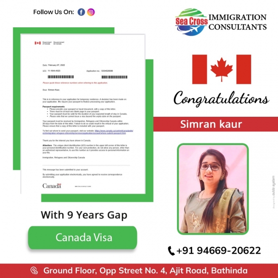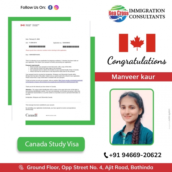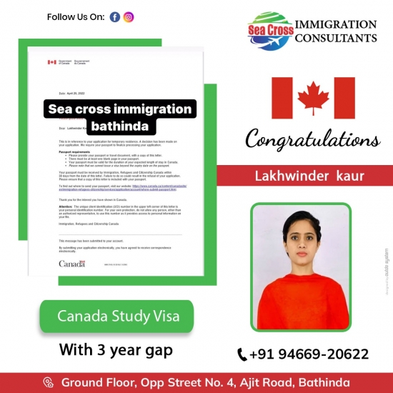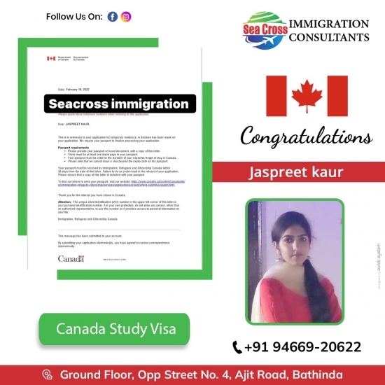 Congratulations 🎉 to Gurinder kaur getting her Canada study visa. 👉 well done team Seacross