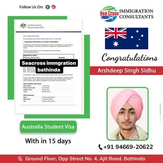 Congratulations to Arshdeep austrial study visa