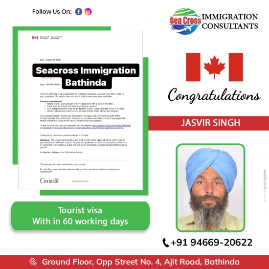 Congratulations to jasvir singh for tourist visa