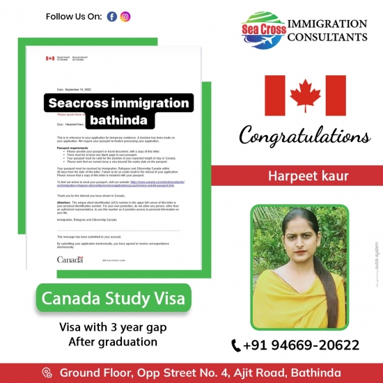 Congratulations to Harpeet kaur for study permit